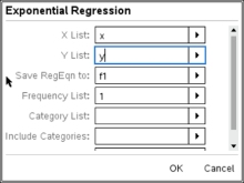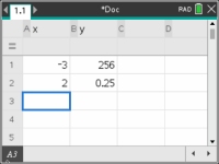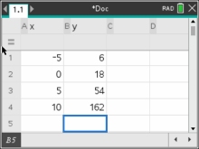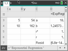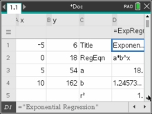 Solution: We will be using the graphing calculator's ability to prepare an exponential regression equation to find the solution to this problem. Under these conditions, we will be obtaining the actual equation (and not an approximation, or best fit, for the equation).