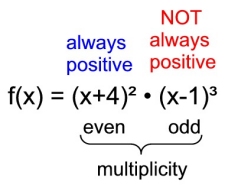 Multiplicity ODD: When the multiplicity (the number of times a factor repeats) is an odd number, the graph will "cross" the x-axis at that point. |